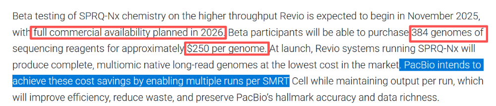 2025年10月29日,我们跟进了PacBio的大幅度降价将Revio的价格降低到500美元/genome。