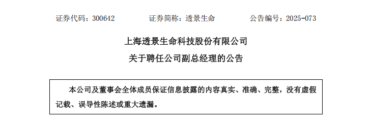 摘要: 此次任命是透景生命整合子公司资源、强化集团化管理的重要举措