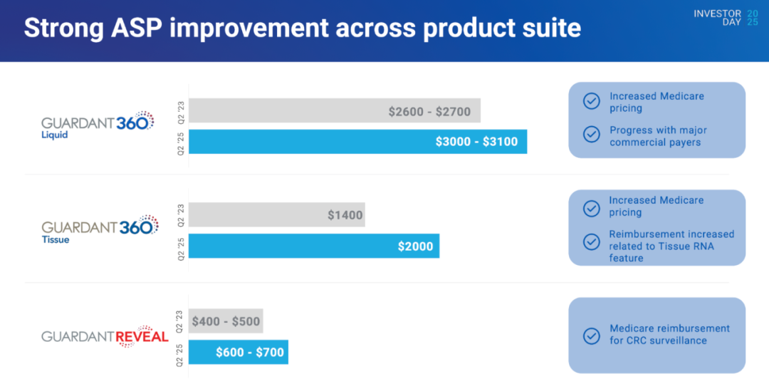 Guardant 360 liquid涨了500美金,tissue涨了600美金,Reveal涨了200美金。