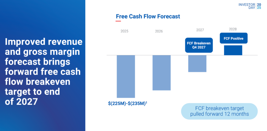 而整体的现金流转正也不远了——预计2027Q4单季度转正、2028去年转正