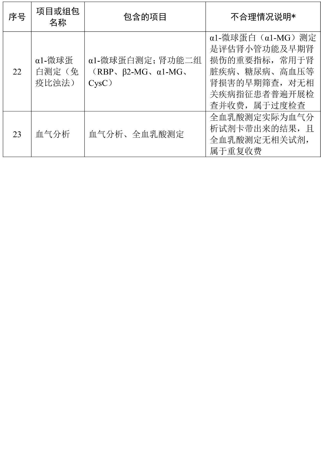 某一检验项目已包含的内容,重复收取费用。即项目A已经包含B、C、D,应只收取A费用,但在收取A的情况下,同时收取B、C、D或其中个别的费用。如: