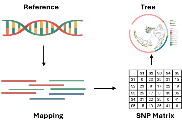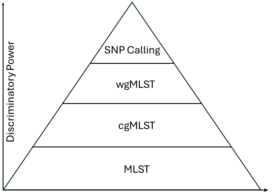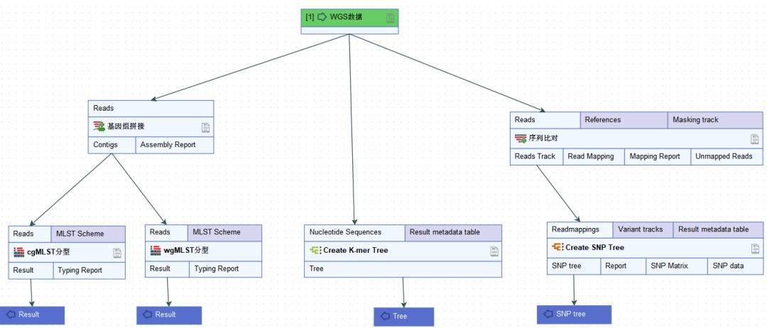 为了分析同一物种内基因组之间的遗传相似性,最初基于7个基因的多位点序列分型方法已扩展到涵盖数百甚至数千个基因位点的核心基因组多位点序列分型(cgMLST)。该方法通过将基因组组装序列与scheme进行比对,从而确定等位基因序列编号。 全基因组多位点序列分型(wgMLST)是cgMLST的进一步延伸,该方法除了使用一组核心基因组位点外,还使用一组辅助基因组位点。实际应用中,通常对cgMLST结果中密切相关的菌株进行wgMLST分析。 单核苷酸多态性(SNP)是通过将测序数据与最相近的参考序列进行比对,基于核心SNP位点构建进化树,鉴定菌株型别。参考基因组的选择对于SNP分析至关重要,可以采用MLST来确定参考序列。 K-mer方法可以克服先验参考基因组和scheme定义的需要。该方法将测序数据分割成特定长度(k)的核苷酸片段。通过比较一组基因组之间K-mer的配对情况,从而评估系统发育相关性。 不同分型技术对于微生物鉴定的分辨率从低到高依次为:MLST-> cgMLST -> wgMLST -> SNP Calling。 CLC Genomics Workbench 将不同分型方法整合到一个可视化平台中,能够高效完成从物种鉴定到溯源分型,大大简化了数据分析工作。 参考文献 Uelze L, Grützke J, Borowiak M, Hammerl JA, Juraschek K, Deneke C, Tausch SH, Malorny B. Typing methods based on whole genome sequencing data. One Health Outlook. 2020 Feb 18. |