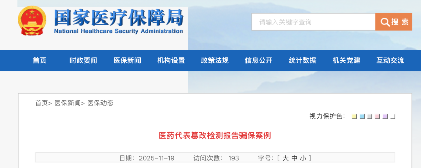 11月19日,国家医保局发布《医药代表篡改检测报告骗保案例》。 其中提到,某医药公司主要负责推广肺癌靶向药奥希替尼的医药代表,为完成销售指标,明知患者EGFRT790M基因突变检测结果为阴性,不符合奥希替尼的使用条件,仍擅自使用“WPS”软件将三名患者的检测报告中基因突变“阴性”结果修改为“阳性”,合计共造成医保基金损失27540元。 法院审理认为,其行为已构成《中华人民共和国刑法》第二百六十六条规定的诈骗罪。综合考量其具有自首、自愿认罪认罚、积极退赔等情节,依法可以从轻处罚;但鉴于其作为医药代表为推广药物使用,获取业绩和提成,罔顾医保资金安全,其行为社会危害性大,不宜适用缓刑。最终判决:被告人陆某犯诈骗罪,判处有期徒刑八个月,并处罚金人民币七千元;退赔在案的违法所得予以发还。 医药代表篡改检测报告并非个案。 去年,一起医药公司医药代表篡改患者检测报告骗取医保基金的案件被列入了《“两高”关于依法惩治医保骗保犯罪典型案例》。 当前,医保基金监管持续强化,医药代表违法违规行为被揪出。 今年9月,国家医保局披露数则医保飞检典型案例,其中提到,某医药代表收敛数十人社保卡,使用这些参保人身份到医院就诊,另有医生明知其冒名就医,仍长期配合为其开具诊断为糖尿病、二甲双胍用药疗效不佳、建议使用司美格鲁肽的门诊复诊处方。医药代表随后前往某定点零售药店集中刷卡,使用门诊统筹基金购买大量司美格鲁肽注射液。 在从严监管大背景下,医药代表从业规范的重要性进一步凸显。