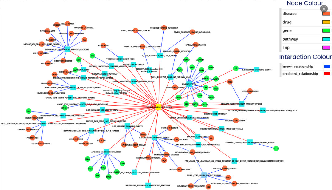 本研究基于EpiSwitch®三维基因组调控免疫遗传分析技术,通过全基因组染色体构象(CCs)筛选,确定了一个200个标记的ME/CFS诊断模型(Episwitch®CFS测试),灵敏度为92%,特异性为98%。通路分析揭示了几个可能导至ME/CFS病理的因素,包括白细胞介素、TNFα、神经炎症通路、toll样受体信号传导和JAK/STAT。与利妥昔单抗和醋酸格拉替雷(Copaxone)(具有ME/CFS治疗潜力的疗法)作用的途径进行比较,发现IL2是具有明确患者聚类的共享途径,表明可能存在靶向治疗的潜在应答组。