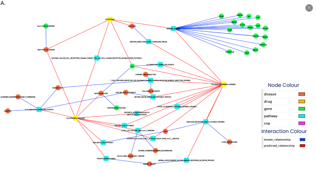 ME/CFS、利妥昔单抗和格拉替雷之间的通路重叠。图片来源:Journal of Translational Medicine
