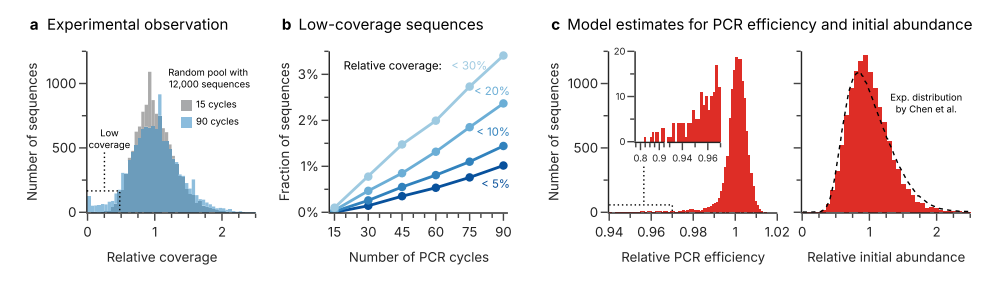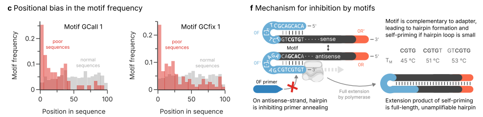 传统上,PCR用于扩增单个目标序列,而大规模平行测序的出现需要同时扩增许多共享短末端adapter的短序列模板。这种多模板PCR现在是许多常规测序准备工作流程的基础,并用于许多领域,比如定量分子生物学、DNA数据存储。然而,同时扩增许多模板也带来了挑战,最关键挑战在于不同DNA模板因序列特异性导至的非均匀扩增现象。这种扩增偏差会显著扭曲扩增子丰度数据,影响定量结果的准确性和灵敏度。传统PCR优化策略(如引物设计、退火温度调整)在单模板扩增中效果显著,但面对含数千个模板的复杂体系时,传统方法难以解决由序列本身特性引起的效率差异问题。 近日,瑞士联邦理工学院在杂志Nature communications上发表了一篇题为“Predicting sequence-specific amplification efficiency in multi-template PCR with deep learning”的文章。本研究开发了具有位置编码功能的1D-CNN模型,能够仅基于序列信息预测扩增效率,在内部验证中AUROC达到0.88,AUPRC达到0.44,表现出卓越的预测性能。研究还提出了名为CluMo的深度学习解释框架,成功识别出与低扩增效率密切相关的特定序列 motif,并发现了adapter介导的自引物形成是导至低扩增效率的主要原因。 图片来源:Nature communications 主要内容 多模板PCR中的非均匀扩增 作者在90个PCR循环中,对具有共同末端引物结合位点的12,000个随机序列的扩增子覆盖率变化进行了跟踪。结果显示,在连续扩增过程中,相当数量的扩增子序列要么严重不足,要么在测序数据中不再存在(下图b)。且分析表明观察到的一些序列的低扩增效率并不是由序列的GC含量引起的。 量化分析显示约2%的随机序列存在显著低于平均水平的扩增效率(相对效率低至80%),这些序列在60个循环后几乎从测序数据中消失(下图c)。实验表明,这些扩增效率较低的序列是与它们的序列有关。 多模板PCR中固有的非均匀扩增。图片来源:Nature communications 位置序列信息对于预测扩增不良至关重要 作者深入研究了实验中表现最差的 2% 序列(下图 a)。以 GC 含量和碱基频率作为特征的回归模型表现不佳(下图 b、c 中的灰色线),这表明某些序列扩增不良不能仅用碱基组成或 GC 含量来解释。 作者训练了三种深度学习模型:RNN、1D-CNN和带位置编码的1D-CNN。其中带有位置编码的1D-CNN模型表现最佳,使用五重交叉验证,平均AUROC分别为0.88和0.87,平均AUPRC(精确度-召回率曲线下面积)分别为0.42和0.44(下图b)。研究进一步验证了模型的泛化性(下图c),且引入位置编码对1D-CNN的性能有很大影响,表明扩增效率低主要是由于模板序列中的位置特异性特征。 位置序列信息对于预测扩增不良至关重要。图片来源:Nature communications 与低PCR效率相关的位置基序 作者开发了一种基于DeepLIFT的基序发现方法CluMo,来试图阐明低PCR效率相关的序列特征,并成功发现了几个与低扩增效率密切相关的位置基序。结果显示,大多数基序包括一个共同的CGTG子序列,且这些基序明显倾向于靠近引物结合位点(下图c)。 进一步研究发现,adapter介导的自引物形成(adapter-mediated self-priming)是导至低扩增效率的主要原因。CGTG等motif与5'端adapter序列形成发夹结构(下图f),在标准退火温度下也易形成,从而抑制引物退火并促进无效扩增产物形成。在3 '方向上移动基序延长发夹环会降低其热力学稳定性,从而降低对扩增效率的预期影响,这解释了在扩增效果较差的序列中,观察到的基序在5′-末端的位置富集。 与低PCR效率相关的位置基序。图片来源:Nature communications 模型性能和基序假说的外部验证 为了验证1D-CNN模型的性能和识别出的基序的抑制效果,作者在外部实验室制备并扩增了另一个寡核苷酸库。结果确认了模型在跨机构数据上保持稳定性能(AUROC 0.8,AUPRC 0.3,下图b)。作者还将10种基序随机插入到40种随机选择的序列中,每个序列在5个不同的位置,结果观察到不同的基序和位置对PCR效率有不同的抑制作用(下图c,左)。CGTG相关的基序在5′-和3′-端最为突出。综上所述,外部验证的结果有力地支持了CluMo识别的基序效应和训练模型的鲁棒性。 模型性能和基序假说的外部验证。图片来源:Nature communications 总结与讨论 本研究开发了具有位置编码功能的1D-CNN模型,能够仅基于序列信息预测扩增效率,在内部验证中AUROC达到0.88,AUPRC达到0.44,表现出卓越的预测性能。研究还提出了名为CluMo的深度学习解释框架,成功识别出与低扩增效率密切相关的特定序列 motif,并发现了adapter介导的自引物形成是导至低扩增效率的主要原因。 这项研究不仅解决了多模板PCR中长期存在的扩增偏差问题,更重要的是提供了一套从数据生成到机制解析的完整研究范式,为理解复杂序列功能关系提供了新的技术路径。通过精准预测和优化扩增效率,该技术有望推动DNA数据存储技术向更高密度、更可靠方向发展,同时为精准医疗等领域的分子诊断技术提供重要支撑。 |