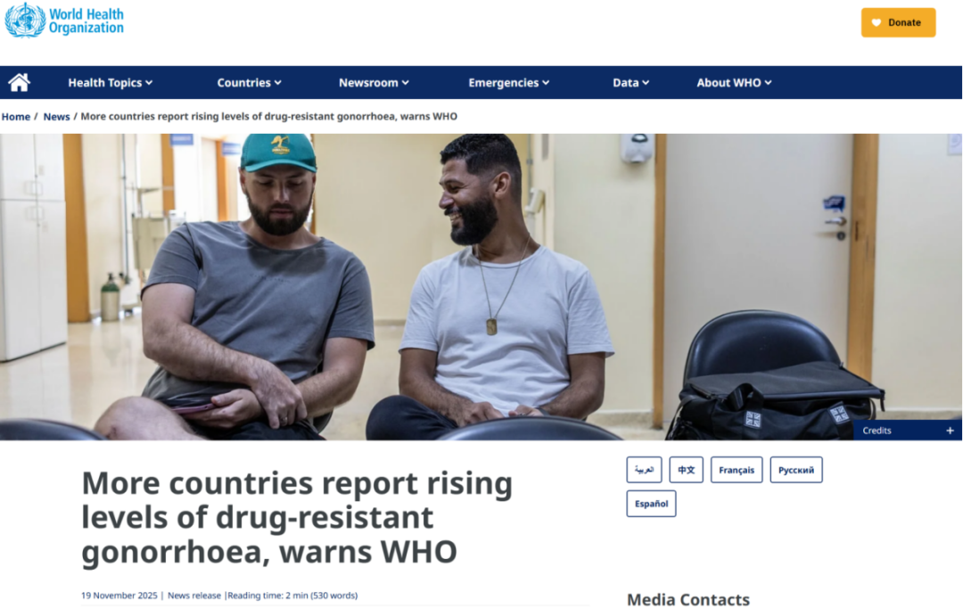 更值得关注的是,淋球菌和HIV被WHO《Integrated drug resistance action framework for HIV, hepatitis B and C and sexually transmitted infections, 2026--2030》列为"最高优先级"病原体。