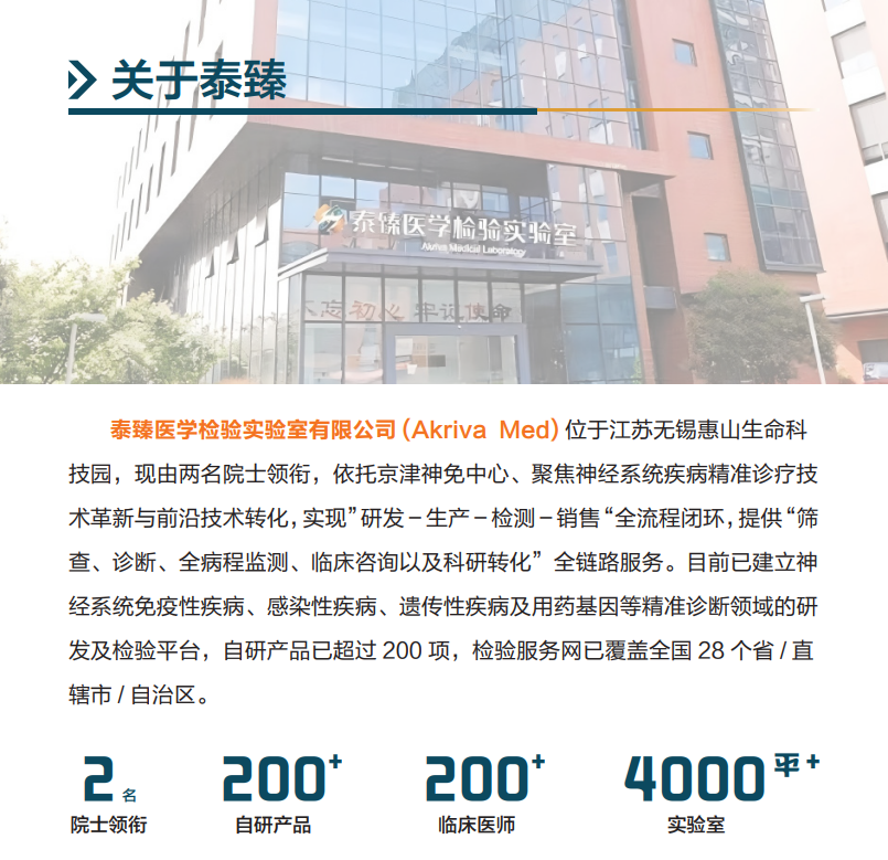完善的神经免疫疾病自身抗体检测体系,需要具备以下几个条件: 不久前,学习参观了位于无锡惠山生命科技园的泰臻医学检验实验室有限公司,亲眼见证了一个国内领先的神经免疫疾病检测体系,印象深刻的有这么几条——