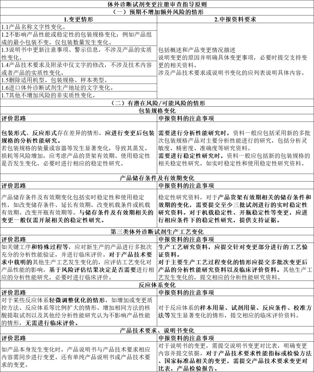 压着2025年的尾巴(发布时间:2025-12-30),国家药监局器审中心(CMDE)发布了《体外诊断试剂变更注册审查指导原则》。一般来说,法规更新后,会尝试把最新发布的版本和历史版本进行一下比较,看看关注重点的变化。 目前在官网中查询,指导原则最早于2023-05-31发布了第一版的《体外诊断试剂变更注册审查指导原则(征求意见稿)》,当时法规适用范围为:本指导原则适用于体外诊断试剂的变更注册(触发程序上的变更),即医疗器械注册证及产品技术要求、产品说明书载明的内容发生变化的情况(触发条件)。本指导原则涵盖的变更情况包括体外诊断试剂变更注册申报资料要求及说明中综述资料部分产品变更情况描述的12种情况(触发条件)。 之后于2025年初(2025-01-24),进行了第二次公开征求意见,适用范围进行了一定程度的细化,变为:本指导原则适用于体外诊断试剂的变更注册,即医疗器械注册证载明的产品名称、包装规格、主要组成成分、预期用途、产品技术要求、产品说明书、进口体外诊断试剂的生产地址等发生变化的情况。本指导原则涵盖的变更情况包括《体外诊断试剂注册申报资料要求和批准证明文件格式》(2021年第122号)附件6(较上次明确)中综述资料部分产品变更情况描述的12种情况。 最终,2025年底发布的正式版指导原则,适用范围中,对于参考的法规又有了细化:本指导原则涵盖的变更情况包括《关于公布体外诊断试剂注册申报资料要求和批准证明文件格式的公告》(2021年第122号)附件6中变更注册申报资料要求及说明下(较上次新增)综述资料部分产品变更情况描述的12种情况。 综上,“《关于公布体外诊断试剂注册申报资料要求和批准证明文件格式的公告》(2021年第122号)附件6中变更注册申报资料要求及说明下综述资料部分产品变更情况描述的12种情况”也是需要我们一起关注的重点,并且是指导原则的一个基础。 后续我们在工作中,如果遇到需要评估是否需要进行变更注册的情形时,最先想到的,就应该是这12种情况。 根据产品具体变更情况提供相应的说明及对比表,包括下列情形: