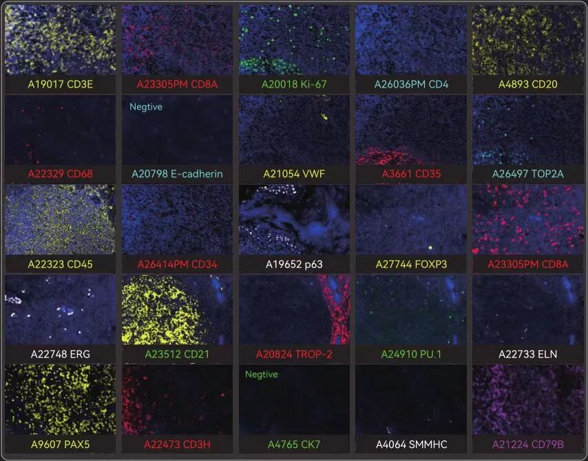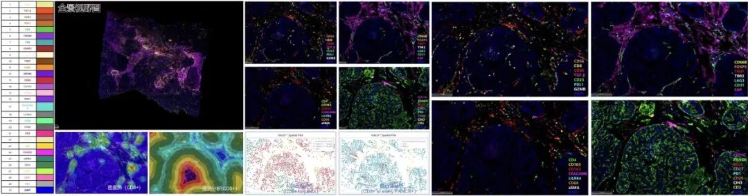 榕嘉生物自主研发Foresight® 空间组学平台。 大类上属于循环荧光染色,用DNA 标签代替了传统二抗;辅以杂交链式反应(HCR)做线性扩增,解决了国外主流DNA标签技术没有信号放大的缺陷;采用oligo 链洗脱条件温和,不会破坏样本,这也是目前淬灭和漂白技术的最大困扰。 目前每轮能测五标六色,理论无限轮,现已稳定做到12 轮,达到60标61色,国内技术最高水平。 艾克发生物,超多重空间蛋白组技术服务上新 引用艾克发AlphaXBio产品及服务的文章平均影响因子已达16+ 艾克发同时提供30色自主超多重空间蛋白组服务,以及与榕嘉生物的合作服务。 明虹天成,循环TSA及漂白迭代 基于循环TSA(Cyclic mTSA)以及漂白迭代技术,可高通量实现对常规临床石蜡切片的超多指标共标记(3-30靶标)。 爱博泰克,可切割荧光探针,25标26重 爱博泰克BioCanvas™ 超多重试剂,采用以可切割酪胺荧光探针 (CFP™) 为中心的多重策略,该策略允许染色、成像和荧光团切割的循环。 在每个循环中,多个蛋白质靶标首先被来自特异性的一抗识别。随后,用二抗和可裂解的荧光酪胺(CFT™)对第一个靶标进行荧光染色。HRP催化CFP与靶蛋白抗原上酪氨酸残基之间的偶联反应。成像后,荧光团以接近 100% 的效率,被特异性剪切试剂去除。通过重复染色循环,可以在单样本中,原位定量分析超多重靶蛋白。 每轮4个抗体,目前做到7轮,25标26重。 华大智造,24重多重荧光 传统的一抗+荧光二抗,温和洗脱,最大染色重数:24-plex。 茵菲空间多组学,以IMC为核心的空间多组学 迈维代谢,空间组学三次方 华盈生物,PCF与LCM-MS 华盈生物日前甄选了2025年发表的文章16篇,其中3篇有关空间蛋白组学。 华盈生物2025 —— 绘生命全景,解空间奥秘:以多维蛋白组学技术引领创新研究新范式! PCF空间单细胞蛋白组:复旦大学中山医院发表在《Cell》上的一篇文章,揭示了癌细胞通过ATF4-SLIT2-CGRP轴激活伤害感受神经元,远程重塑肿瘤引流淋巴结(TDLN)的免疫状态,从而逃避免疫监视的新机制,为联合神经调节和免疫治疗提供了理论基础。 PCF空间单细胞蛋白组,助力研究者发现了众多免疫细胞中,只有肿瘤相关巨噬细胞(TAM)和伤害感受神经元具有显著的共定位关系,为揭示“TAM激活伤害感受神经元”的机制假说提供了直接的空间原位证据。 中国医学科学院肿瘤医院在《Signal Transduct Target Ther》上发表题目为《Characterization of the extrinsic and intrinsic signatures and therapeutic vulnerability of small cell lung cancers》的文章,全面描绘了小细胞肺癌(SCLC)的单细胞和空间图谱,系统解析了SCLC的肿瘤微环境组成和癌细胞异质性,并首次报道了FAK剪接变体可作为SCLC的预后标志物和治疗靶点。 PCF空间单细胞蛋白组检测服务,助力研究者揭示了肿瘤组织和癌旁组织显著差异的免疫微环境特征,并发现了对免疫治疗反应不同的患者中,肿瘤细胞上抗原呈递分子MHC表达的显著异质性,为理解SCLC免疫逃逸机制提供了新视角。 LCM-MS空间蛋白组:长征医院在《Cell》上发表题为《An iPSC-derived CD19/BCMA CAR-NK therapy in a patient with systemic sclerosis》的文章,该研究设计并开发了iPSC来源的CD19/BCMA双靶点的CAR-NK细胞产品QN-139b,并成功应用在一例难治性硬皮病患者中,为重症自身免疫病提供了变革性治疗方案。 LCM-MS空间蛋白组发现了CAR-NK灌输后,在患者皮肤的基底层、汗腺层、上皮层和真皮胶原层中不同的生物学通路被激活,揭示了QN-139b通过双靶点清除致病B细胞,可以重塑免疫稳态和逆转组织纤维化。