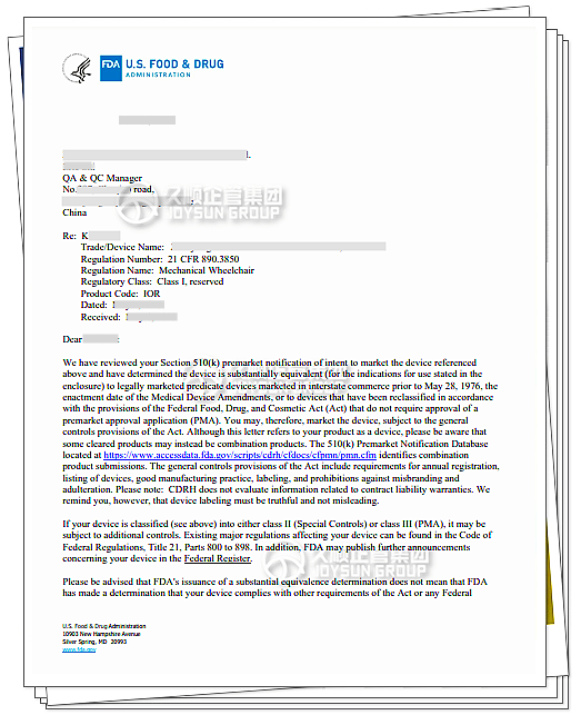 附成功案例证明:医用非OTC手动轮椅康复器械的型号增加特殊510(k)申请,且一次性提前通过、零发补(项目仅用时28天,比官方时间还提前2天)
