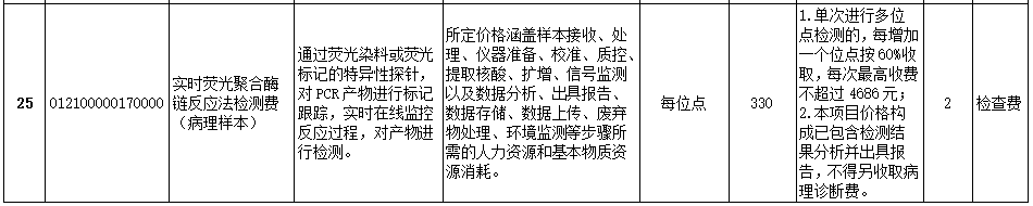 PCR方法每位点330元,单次进行多位点检测时,每增加一个位点按330元的60%(198元)收取,每次最高收费不超过4686元。