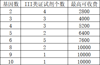 比如说在准入时以单个基因检测为一个面板。根据九哥统计的目前已获批的22个肿瘤NGS III类试剂盒我们可以做个简单的计算:目前有四个试剂盒获批两个基因,最高可收费2800元;有三个试剂盒获批三个基因,最高可收费4000元;8基因及以上的试剂盒共四个,最高可收费10000元;相较于重庆方案的最高只能收费4380元。