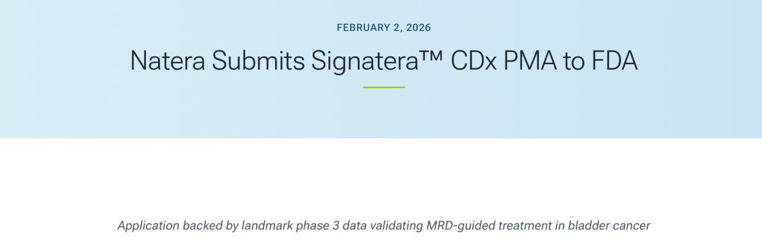 4天后的2月2日,Natera宣布其定制化MRD产品Signatera的CDx适应症完成了FDA PMA的提交: