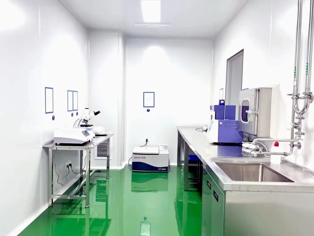 位于天津,临近空港,独享京津冀核心经济圈优势。总面积2300平米,超过1500平米的洁净生产车间,包括一个超过1000平米、有两条独立生产线的十万级车间,一个接近200平米的万级车间,一个万级阳性车间,一个万级微生物实验室,还有一个50平米冷库,全部独立的空调机组。设备生产车间两个共300平米,试剂研发实验室两个共300平米。有生产设备约200台、研发设备30余台、检验设备60余台。车间自2023年建成以来一直保持良性运营、正常生产。