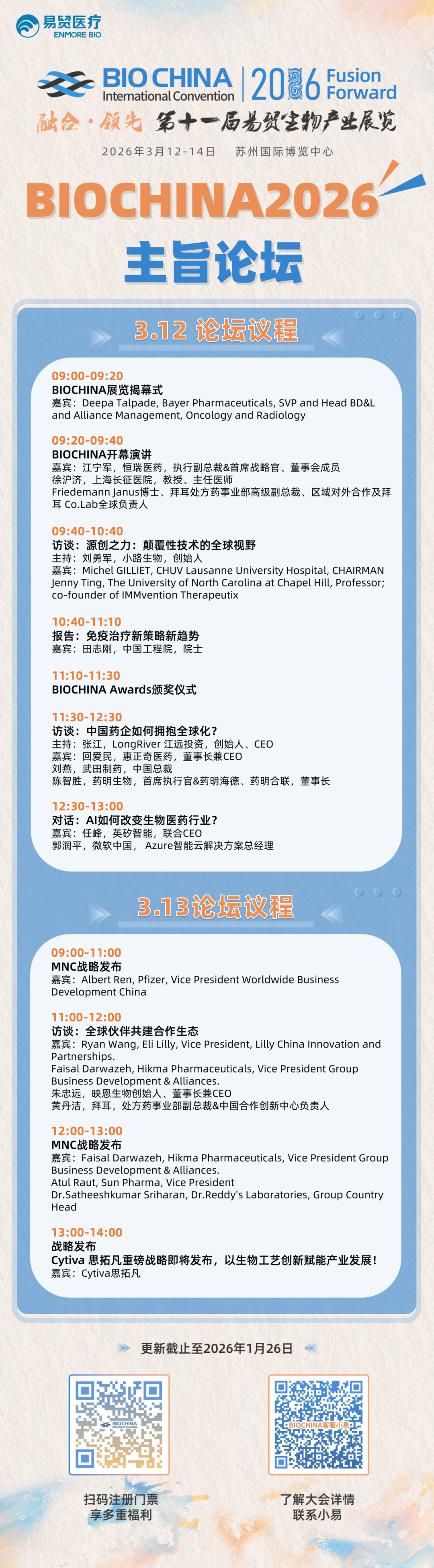 这里有巨头企业的战略布局风向,有前沿赛道的技术突破成果,更有海量高价值的合作机遇。3月12-14日,苏州国际博览中心,BIOCHINA2026 邀您与全球生物医药领军者面对面,共探行业发展新机遇,共赢全球市场新未来!