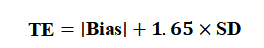 其中,Bias可通过回收率换算(Bias=R−100%),SD为测定结果的标准差。若计算的TE小于规定的允许总误差,则方法在该水平的准确度被接受。
