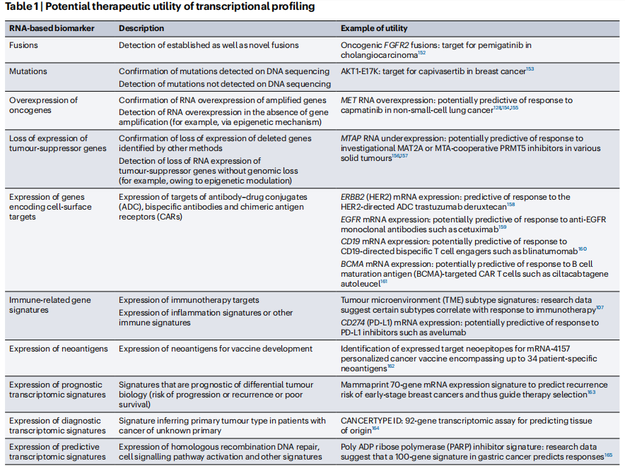 转录谱分析的潜在治疗效用。图片来源:Nature reviews clinical oncology
