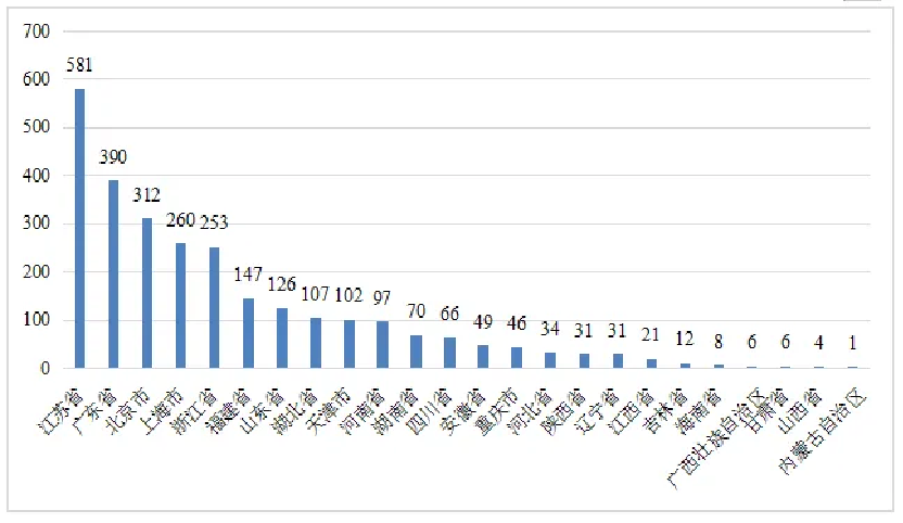 其中,江苏、广东、北京、上海、浙江是境内第三类医疗器械首次注册数量排前五名的省份,占2024年境内第三类医疗器械首次注册数量的68%,与2023年相比基本持平。