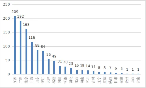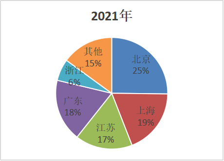 其中,江苏、广东、北京、上海、山东是境内第三类医疗器械首次注册数量排前五名的省份,占2021年境内第三类医疗器械首次注册数量的67.9%,与2020年相比增加4.9%。