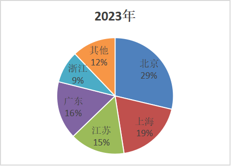 其中,江苏、广东、北京、浙江、上海是境内第三类医疗器械首次注册数量排前五名的省份,占2023年境内第三类医疗器械首次注册数量的68%,但与2022年相比略有减少。