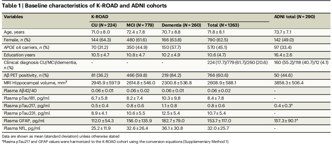 在痴呆阶段,年龄和 pTau217成为最强的预后预测因子,年龄≤60岁(早发性AD)的患者进展风险显著更高(如下图c)。pTau217在所有三个阶段(CU, MCI, 痴呆)都作为重要的预后判别因子,表明了其作为AD核心病理过程的可靠血液标志物价值。