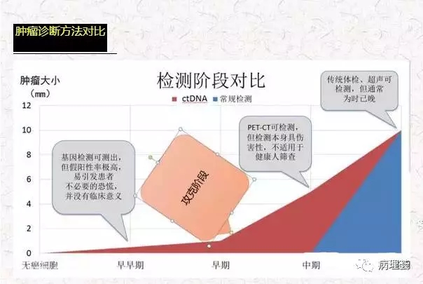 一、肿瘤液态活检的背景介绍 大家知道,美国的肿瘤治愈是60%, 早期被发现的治愈率是90%。 日本的治愈率也很高。日本癌症治疗,有自主研发的防癌抗癌治疗研究体系。在癌症诊断、治疗方面,尤其是早期癌症的发现,领跑于世界各国,保持着发现癌症的世界记录—— 发现毫米级别以下的早初期癌症。可以发现10毫米及以下大小的肿瘤组织。中国临床上发现诊断肿瘤的水平是在几个厘米大小的阶段。所以中国的治愈率低很多,因为发现的晚,发现的太晚。 鉴于癌种不同,举例中国男性发病率最高肺癌的治愈率是10-30%,原因是因为大多数肺癌发现的时间已经是中晚期。 假设各个国家在治疗水平一样,要想提高治愈率,主要在肿瘤的早期诊断和早期筛查上取得进步。 目前中国的癌症诊断方法有: 1、X-射线 2、CT,PET-CT 3、多项癌症标志物 前面两种方法大家都非常熟悉,常规的体检啊,很多都是接触过的,第三种,也是目前医院和体检机构常用的。但是大家不怎么熟悉。 肿瘤标志物,举例,甲胎蛋白--就是肝癌的一项重要的标志物。是胚胎时期肝细胞合成的一种特殊糖蛋白,甲胎蛋白是胚胎时期肝细胞合成的一种特殊糖蛋白,它是临床检测肝癌的一个重要指标,因70%-90%的 肝癌病人的甲胎蛋白都呈现高浓度阳性。但是一些良性肝病和一些胚胎性疾病也会呈现此项异常。所以,对肿瘤标志物来说,其特异性和灵敏度是一个很大的挑战。 二、肿瘤诊断方法对比 仔细看这张图,就可以非常清楚的知道目前的筛查和诊断困局: 目前医院采用的诊断的仪器和方法,集中在后面的两个标识区域,确诊的肿瘤基本在厘米级别。需要攻克的阶段用橙色标识,目标是在1毫米级别的时候识别病灶。 1、超声,体检射线能发现的肿瘤组织大小在10毫米,也就是一个厘米以上,这也是本文开头提到的,远远低于日本,远低于美国等国家 2、PET-CT,这种检查方法的检测限大约在几个毫米,相对早期一点,但是这种仪器的检查对人的身体本身有伤害,并且也不可能引入到常规的体检中的,实际的医院中,进行此项检查的一般是有症状或者有其他的检测结果,作为辅助的手段诊断 3、目前很多公司推出的基因检测,针对健康人群的,但是给出的结果是预测性质的,并且基因的突变,检测位点的不同,人种,地域等不同都会有不同解读,检测的结果不太能说明问题,实在没有必要纠结。 4、攻克阶段,(对应图中的橙色标记阶段),可以很清楚的看出,这是最富有诊疗价值的部分,因为: A:对健康人群可以早期诊断 B:结果较为准确 这是目前科研人员和企业家磨刀霍霍的地方,因为可以为肿瘤患者争取黄金的治疗时间。哪家公司能首先取得突破性进展,市场无限可能。 三、如何实现肿瘤的液态活检——理论基础 通过以上背景的分析,相信各位已经了解了,那是要如何做到并攻克这个阶段呢,也就是目前所提“液态活检”。 “液态”的意思检测样本一般来自血液。而不是手术组织或者穿刺活等....有别于下表中主流的确诊手段。 液态活检是一种非侵入式的血液测试,目前主要的的方法是提取到血液中的: 1、循环肿瘤细胞(CTC); 2、循环肿瘤 DNA(ctDNA)片; 3、外泌体。 其中CTC 是由实体瘤或转移 灶释放的,进入外周血循环的肿瘤细胞,侧重于细胞病理,适用于治疗后的病情监测,判断预后等;而 ctDNA 是肿瘤 细胞释放到血液循环系统中的 DNA,侧重基因层面,获取突变信息,适用于早期筛查,个性化用药指导,耐药性监测 等;外泌体所含信息丰富,包括蛋白质,RNA 等,不仅能用于临床诊断,还有可能能够用于疾病的治疗。以上的这三种分别是啥东西?其实并不必弄清楚,只需要知道,这是三种存在形式,是可以被提取到用于检测的样本形式就可以了。想看到他们长的啥样子,需要高倍的显微镜才行,光有高倍的显微镜还不行,还需要慧眼识别,所以,不必纠结。 血液中的这些DNA为例,参考下图,在肿瘤还不不能形成:“瘤”之前,就会有肿瘤细胞释放的DNA片段进入到血液中,顺着血液循环,自由行走。在影像学发现病情的前2-3年或者更早的时候,通过检测血液中的DNA片段或者肿瘤的细胞,就可以揭示病情的存在,这就是开发“液态活检“技术的理论基础。 为了让大家看的更加清楚,明白,这里引用Nature杂志上的一个经典图片来说明。把血管放大,再放大.....继续放大,结果如下图。 中间粗壮的枝干代表血管,左右两边还未成形的肿瘤会释放细胞或者DNA的片段,进入血管,循环到全身(这也是肿瘤转移的理论前提)。假如能用有效的手段,截取收集到这些散落在血管中的细胞或者碎片,就可实现早期的诊断了。 但是,实现截取收集这些细胞或者DNA 碎片谈何容易? 比喻为大海捞针一点都不夸张。但是,在挑战面前,总会有勇者迎难而上。