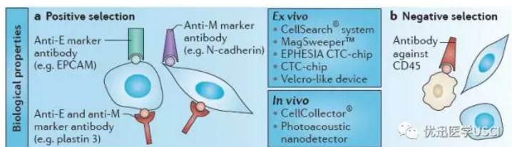 ![]() 近两年,ctDNA液态活检在肿瘤诊疗中的成绩可谓有目共睹,历次学术大会上专家都给予了的充分的肯定。但另一方面也表达了对液态活检的期望:ctDNA优势不少,但是复杂的变异情况,加之高昂的检测费用。使得研究阶段提出的疗效评价,病情监测等应该充分发挥液态活检取样优势的方面,却离临床应用总有一步之遥。 肿瘤液态活检的概念亦起源于CTC,相比ctDNA,发现最早却浮沉多年的CTC在几番打磨后逐渐发挥出自己的优势。CTC可是祖师爷级别的发现,与孟德尔种豌豆得出遗传定律大概是一个时期的事情。早在1869年,CTC在血液涂片中就已经被观察到了,但是是在癌症病人死后尸检时观察到了CTC的存在。讲基因组学的故事常常从孟德尔说起,而这篇文献但凡是想介绍下CTC历史的文章中必被小辈拱手引用。这时间可比随着医学的发展与进步,人类给癌症摘掉绝症的帽子早了一百多年。 随着CTC分离和鉴定技术的发展,对于CTC的研究再次成为肿瘤领域的焦点。FDA批准上市了cellsearch掀起了新一轮的热潮;有人对PubMed下circulation tumor cell 这一关键词检索发现2013-2015年间全球每周新文献数量在20-25篇左右。今天就带大家一起走进这个大热点。 基础篇 CTC从哪里来 循环肿瘤细胞(Circulating Tumor Cells,CTC) 主要来源于肿瘤组织自发脱落的肿瘤细胞或是人为操作带入外周血的肿瘤细胞。 CTC在脱离了肿瘤组织的环境后往往很脆弱,失去细胞间相互作用而发生失巢凋亡,被血液中的免疫细胞攻击致死,或者干脆觉得进了循环系统就像猫咪跳进洗衣机,被血流的剪切力给冲死了。 但是如果CTC发生了上皮间质转化,或者是形成循环肿瘤细胞团(circulating tumor microemboli,CTM) 组团外出,那么存活下来并且发生转移的概率则大大增加。 CTC与转移 肿瘤转移的机制尚有许多不清之处,有待验证,但是近年来CTC的研究揭示了CTC是恶性肿瘤患者出现术后原位复发、远端转移和浸润的重要原因。上皮间质转化则可看做是“种子-土壤”假说的现代版本。 ![]() “种子-土壤”这个名字一出,相信大家已经理解的八九不离十了。原发肿瘤组织产生“种子”,“种子”找到合适的土壤生长为新的肿瘤组织。目前研究发现上皮间质转化就是产生种子的关键一步。 上皮间质转化(Epithelial-mesenchymal transition, EMT) ,顾名思义就是上皮细胞在形态学上发生向间充质细胞表型转变的过程。这一过程本是胚胎发育的基本过程,也是炎症反应、伤口愈合等组织修复再生时必须的。然而肿瘤细胞在一定条件下发生EMT转化就会得到新技能:迁移。 上皮细胞间连接紧密,相对稳定不可移动。间质细胞很少有细胞连接,结构松散分散于细胞外基质中。这一转化是受到严格调控的过程,基因表达的改变促使上皮细胞停止分裂,离开原本附着的基底膜,切断与周围细胞的联系,细胞骨架也发生相应的变化以增强运动能力。 CTC与病程 转移是肿瘤发展进程中的重要特征,CTC的数量与肿瘤负荷、病程发展息息相关。 ![]() 这是一项针对乳腺癌病人的研究中的案例。虚线表示了影像学的评估,PD代表疾病进展,PR代表部分缓解,SD表示疾病稳定,这一评价体系是NCI、FDA等全球多家癌症研究机构推荐的实体瘤疗效评价标准。主要通过影像学方法评估瘤体大小的变化评价疗效。可以明显看到在第一个疾病缓解期,CTC水平已经上升,换药后,CTC的下降也即时反应了药物有的有效性。 据有关研究发现,CTC对于病情进展的指示作用要比影像学评估平均早6-8个月的时间,可以帮助医生及时掌握病情,调整治疗方案。 技术篇 在开始正题前,我要讲一个警匪的故事,如果你能勉强接受这个不完备的假设,或许对于理解CTC的技术有一点点帮助。 人体的内部仿佛其实很像一座城池,循环系统就是承载它运转的交通系统,里面跑着的红细胞像运输员,数量极为庞大;白细胞像治安官负责抓坏蛋。城市总有黑暗面,而肿瘤就是黑社会,黑恶势力的暗自成长就会影响城市正常的功能,掠夺城市运转的社会资源。黑社会一方面会扩张自己的领地,而那些小弟里面也有不甘心于此,妄图自立山头。 现在复习一下之前的内容,循环系统里面会有一些小流氓是出来闲逛的,他们比较容易被警察捕获或是其他原因挂掉。另外一些小流氓或许内心已经悄悄变化,长出了一颗王者的心,他们比较耐磋磨,条件适宜的情况下,可以另辟疆土自立门户。有一些干脆组团出发,抵御循环系统恶劣的环境。 CTC的富集 转移是肿瘤发展进程中的重要特征,CTC的数量与肿瘤负荷、病程发展息息相关。只是观测到CTC并不能作为有效的预后标准,科学的评价必须建立在CTC有效富集的基础上。CTC这种细胞计数即能反映预后的标志物,富集方法对于检测有效性的影响可想而知。然而CTC沉浸在血细胞的海洋里,CTC含量之低有如在文学巨著里面挑错别字。那么我们是如何解决这个问题的呢? ![]() 方法1,生物富集 ![]() 负责运输的红细胞与CTC和白细胞的个头差别比较大,分离起来不成问题。主要的难点集中在白细胞与CTC的分离上。 正向富集——正面出击,我们直接寻找到小流氓 黑恶团伙总会带一些别人不带着的东西,比如举着个棒子。我们用特异性寻找棒子的方法来找到CTC细胞。 最常用的棒子就是EpCAM,通过EpCAM富集是一项成熟的技术,cellsearch系统也是通过它对细胞进行分选的。 EpCAM全称上皮细胞粘附分子,是细胞膜上的一种蛋白质