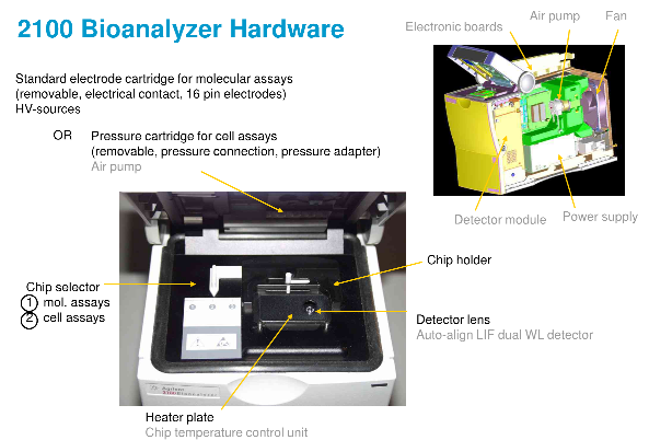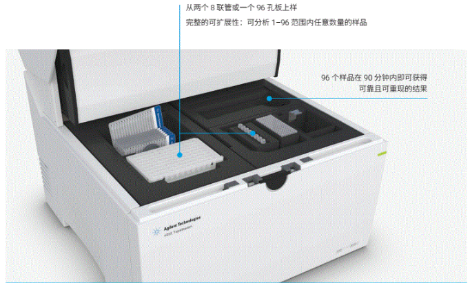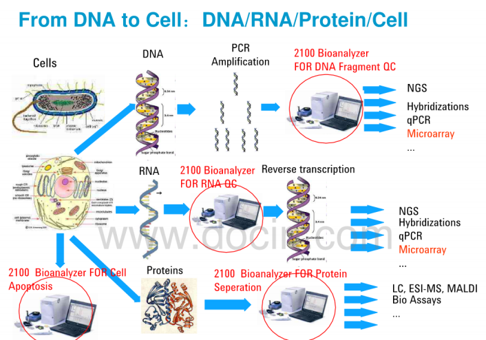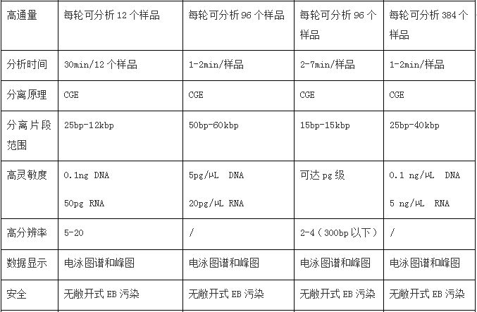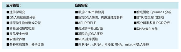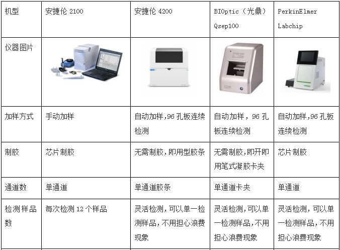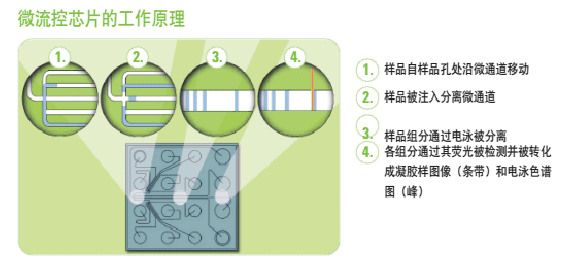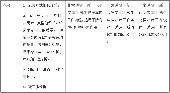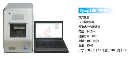 01 原理 毛细管电泳(capillary electrophoresis,CE),又叫高效毛细管电泳(HPCE)是利用带电性不同的粒子在电场中迁移,在泳动过程中物质的各组分被分离。被分离物质的迁移率取决于分子的结构、形状和电荷数量等因素,同时受溶液PH值、离子强度、粘度和两性电解质因素的影响。 02 发展史 1981年 Jorgenson 和 Lukacs 首先提出在75um 内径毛细管柱内用高电压进行分离,创立了现代毛细管电泳。1984年Terabe等建立了胶束毛细管电动力学色谱。1987年Hjerten 建立了毛细管等电聚焦,Cohen 和 Karger 提出了毛细管凝胶电泳。1988~1989年出现了第一批毛细管电泳商品仪器。从此,由于毛细管电泳符合了以生物工程为代表的生命科学各领域中对多肽、蛋白质(包括酶、抗体)、核苷酸乃至脱氧核糖核酸(DNA)的分离分析要求,得到了迅速的发展。 现在市面上比较流行的利用毛细管电泳技术对dsDNA、RNA进行分离的核酸分析仪,下面进行详细介绍。 03 目前常用的不同仪器 以下是每款仪器的详细介绍 安捷伦2100 安捷伦2100生物分析仪是台基于微流控技术的多功能微型工作平台,是Lab on a chip理念的集中体现,不仅能应用于RNA、DNA和蛋白质的定性定量分析和简单流式细胞分析,还给出RNA分子完整性标准RIN值。配套软件2100 Expert 功能强大,界面友好,方便各种后期数据处理和输出。 安捷伦2100生物分析仪的基本原理是微流控技术,在玻璃芯片上蚀刻若干微米级通道,构建“微型实验室”,样品从上样管道进入芯片,在电场或压力场作用下,进入分离管道,在分离管道内样品完成自动分离,到达监测点,激光激发荧光发光,仪器收集并自动处理数据,完整芯片上的自动化分析。 应用1)RNA领域:检测Total RNA 纳克级、皮克级、和特异性检测small RNA、; 2)DNA领域:检测小分子DNA(小于1Kb)和大分子(7.5kb和12kb)DNA; 3)蛋白质领域:检测小分子(小于80kDa)和大分子(230 kDa)蛋白质,以及高灵敏度宽检测范围(250 kDa); 微量、快速和自动化是2100生物分析仪主要的特点。核酸样品只需要1ul,蛋白质和细胞样品也只需要4ul和10ul,节省大量宝贵样品和试剂耗材;5分钟内可完成样品上样,30分钟完成整个芯片的样品分离和数据分析,快速简便;自动化分析,只需手工上样,无需更多操作。数字化分析结果,便于保存和共享;更高分辨率和准确率,更高灵敏度;预包装试剂盒,无需任何繁琐准备,避免人为干扰和误差;试验不需要接触有毒有害化学物质。 RIN -RNA Integrity number,是安捷伦的保护RNA完整性指数,考虑各种 RNA的因素,经函数计算而得。82%的芯片领域用户将其作为RNA质控标准,RIN已经成为公认的RNA质控金标准。 2100 expert,界面友好,功能强大的操作软件:不需要复杂的设定,仅需选定使用的试剂盒种类,就可以进行全自动的样品分离和数据分析。试验结果以峰形图和模拟胶图的形式给出,满足不同使用者的需要。可直接进行试验数据的重叠、分析、标记、查找等诸多后期处理,以及数据的数字化输出。 基于毛细管电泳中待测样品在电场作用下离子迁移速度不同而对组分进行分离和分析的原理。 操作 全自动核酸蛋白分析系统的操作系统非常简便,简化了繁复的操作与流程,能让一般用户在5分钟内学会操作系统,1分钟分析样品得出结果。 它将传统实验室的多个繁杂步骤:包含样品准备、配胶、点样、跑胶、拍照及结果判读,整合简化为单一步骤。使用可抛弃式卡夹,使复杂的生物样本分析以快速、精确、低成本的方式 得以实现。其高通量、高分辨率、高灵敏度、全自动、标准化、无污染的特点赋予了其强大的检测分析功能。 Qsep100全自动核酸蛋白分析系统,采用可抛弃式的预制胶卡夹,即插即用,全自动进样,无须人工制胶、灌胶、上样,免去了手工制胶的繁琐和人工上样的误差,可用于核酸质控和PCR产物电泳,分辨率高,重复性好,可处理1-96个任意个数样本,真正实现了核酸片段和蛋白的快速、自动化、高通量、高分辨率分析。 视频: Qsep应用、配套试剂等详细介绍 新型安捷伦4200 TapeStation系统是安捷伦样本质控的力作。它结合了2100生物分析仪在RNA质控上的出色能力,继承了2200 TapeStation在DNA完整性评估上的突破,同时融入了自动化与高通量,是在新一代测序(NGS)、生物微阵列芯片分析和 qPCR 工作流程中对生物样品进行质量控制(QC) 的理想解决方案。 基于毛细管电泳中待测样品在电场作用下离子迁移速度不同而对组分进行分离和分析的原理。 4200TapeStation系统的DNA 完整值 (DIN) 可对DNA进行量化评估,帮助科学家在新一代测序 (NGS) 及比较基因组杂交 工作流程中评估基因组 DNA (gDNA) 样品的完整性。安捷伦TapeStation分析软件可以自动给出gDNA样品的完整性估值(DIN),数值从 1(高度降解)至 10(高度完整)。 PerkinElmer Labchip LabChip Touch 平台提供了易于理解的 RNA 浓度以及核糖体 RNA的比例,与 RNA 质量评分共同用作完整性评价指标。 RNA 质量评分 (RQS) 是对样品的质量和完整性的量化评价,可预测下游基因表达实验(如芯片分析或实时 PCR 等)的成功几率。 除 RQS 值外,分析软件现在可以自动计算 DV200 值。这两个值可以导出,并用于确定来自诸如 FPE 标本的 RNA 样品的质量。经验证,RQS 与 Agilent® RIN(RNA 完整性指数)密切相关并遵循相同的 0-10 量化评级。 基因组 DNA 样品降解评分为 LabChip GX Touch 系统开发的基因组 DNA 实验创新性的引入了基因组 DNA 质量评分(GQS),替代传统的凝胶电