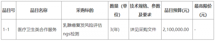 12月21日,中国政府网中国政府购买服务信息平台发布“惠州市第一人民医院精准医学中心外送检测项目(二次)招标公告”,外送ngs检测检测项目,预算金额为610万元。