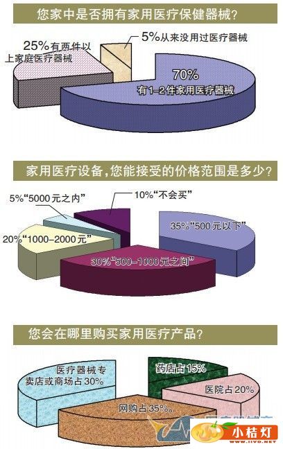70%的市民有1-2件家用医疗器械 问到“你或家人对家用健康医疗知识的了解情况”时,60%的市民认为“了解较多”;30%的市民“知道一点,但没主动去了解”;从没了解过的占10%。 “您家中是否拥有家用医疗保健器械?”有70%的市民回答家里“有1-2件家用医疗器械”;25%的市民回答家里“有两件以上家庭医疗器械”;5%的市民回答“从来没用过医疗器械”。 在“哪些原因会促使您购买一些家用医疗产品?”这项调查中,20%的市民认为“与自己工作状况相关”;25%的市民为了“保障健康”;45%的市民回答“买给亲朋作为礼物,如父母”;10%的市民选择“有人推荐”。 “如果有一台便携式的家用医疗设备(具有物理多方位治疗、中医保健等功能齐全),您能接受的价格范围是多少?” 35%的市民认为接受范围在“500元以下”;30%的市民认为可接受范围在“500-1000元之间”,20%的市民认为接受范围在“1000-2000元”;5%的市民认为可接受范围在“5000元之内”;10%的市民认为“不会买”。 “如果需要,您会在哪里购买家用医疗产品?”回答显示,药店占15%;医院占20%;医疗器械专卖店或商场占30%;网购占35%。 主要的消费群体为老年人 “现在家中常备医疗器械,就像以前常备体温计、创可贴一样,越来越普遍。”王女士接受采访时说,前几天,她刚刚花568元在网上购买了一台臂式电子血压计送给自己的老母亲。王女士说,为了家中老人的健康护理,她已花费数千元购买了诸如血糖仪、血压计、理疗器具、雾化器、电动足浴桶等众多家用医疗保健器械。 据了解,家用医疗器械可分为家用治疗仪、家用检测器械、家用保健器械和家用护理康复器械四大类。家用治疗仪有家用颈椎腰椎牵引器、牵引椅、理疗仪器、多功能治疗仪等;家用检测器械有血压计、血糖仪等;家用保健器械有电动按摩产品系列、各种理疗垫、睡眠仪等;家用护理康复器械有功能床、煎药器、制氧机等。位于学院路的某医疗器械专卖店负责人告诉记者,市民的健康意识越来越强,越来越注重预防和保健,花几千元钱买个治疗设备,能用十几年,家用医疗器械在普通家庭消费中潜力巨大,而且现在帮老人买医疗器械的子女也越来越多。据一家知名药店店长介绍,过去到药店一般买保健食品的多,鲜有人来买家用医疗器械。如今,家用医疗器械逐步红火,成为晚辈送给长辈的健康礼物。在家用医疗器械中,最为走俏的是老年用品。 家用医疗器械需求越来越大 通过近年来参展企业推广的产品可以看出,医疗器械在药交会上所占的比例增加,类型趋于多样化,这也反映了越来越多的人开始注重家庭养生、器械养生,这为国内医疗保健器械市场迎来发展契机。据相关数据显示:中国目前医疗保健器械市场已过千亿元规模,年均增长率约23%。有专家预言:2020年,中国将成为世界上最大的家用医疗器械市场,到2030年这个市场的规模将会达到万亿元规模。 在2013年双十一网购热潮中,天猫商城创造了单日销量350亿元的纪录。在电子商务逐步取代实体商业的今天,医疗器械电子商务也发展迅速,在采访中,众多市民更青睐在网上“淘”医疗器械保健用品。在淘宝网上,记者看到一款售价596元的足浴盆,周销售量竟然达20553笔。同时,还了解到可穿戴医疗设备在网上更是受到了众多人的青睐和接受。 目前,家用医疗器械的需求越来越大,但由于医疗器械产品良莠不齐,不少市民无所适从。为此,本报健康周刊“爱健康”微信平台在本周六、周日举办团购会,为大家提供令人放心的高性价比健康产品。有了这些健康产品, 他们的生活也有了一丝变化…… 每天先按摩再午睡 主角:小然 小然工作后,也没能拿啥钱回家,但是会买各种吃的用的玩的回家孝敬父母。或许是两代人的消费观不同,小然买回家的东西基本上都被爸妈唾弃,评价不是“乱花钱”就是“中看不中用,还占位置”。去年大年初二,小然一家去舅舅家拜年,发现家里新增了一台按摩椅。妈妈试躺了一下,顿时爱上了。向来节俭的她,居然主动开口要求小然把这一万多元的玩意儿买台回家。 妈妈最喜欢躺在按摩椅上看电视,还可以自由调节靠背高度。每次妈妈到温州长住一段时间,就会感慨:“腰酸背痛的,我要回老家按摩一下。“而爸爸认为,这是小然买回家的东西中“唯一有用的”,每天中饭后他第一件事情就是躺到按摩椅上,盖好毛毯,然后启动按摩椅。等40分钟的按摩程序结束,他也已进入梦乡。按摩椅还是“哄”各种亲戚长辈的利器,长辈来了,按摩椅上一趟,边享受边和晚辈们聊天,大家各种满意。如今,这按摩椅已经成了家庭的中心之一。 从此只喝自己滤的水 主角:小曼 小曼家住19楼,二次供水,自来水都要通过大楼的蓄水池然后再下来。这蓄水池一年也会由物业组织清洗一两次,可小曼总觉得不那么干净。有次台风天后,她家水龙头放出来的水居然是微黄色的,让人实在不敢喝。怀孕后,一个做外贸的朋友送了小曼一个碧然德滤水壶,说是能净化水质。每次烧水之前都要先用滤水壶过滤,一开始挺不习惯的。为了宝宝,坚持了。 可一段时间下来后,小曼发现,对健康到底有多少好处,她也说不上来,但她已经喝不惯外面的开水了,每次都特别想念家里喝起来有点清甜的过滤水。于是,她开始了每天带水出门的日子。一晃眼,这个滤水壶她家都用了4年多了。现在她每年都要托朋友从欧洲带一年份的滤芯回